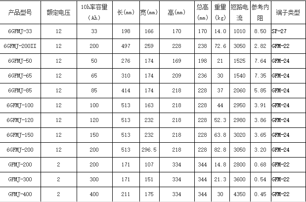 3.設(shè)計浮充壽命:在25℃±5℃環(huán)境下,2V系列為18年;12V系列為15年;