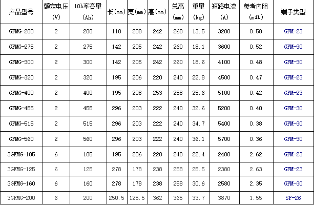 - 容量范圍(C10):105Ah~560Ah(25℃);